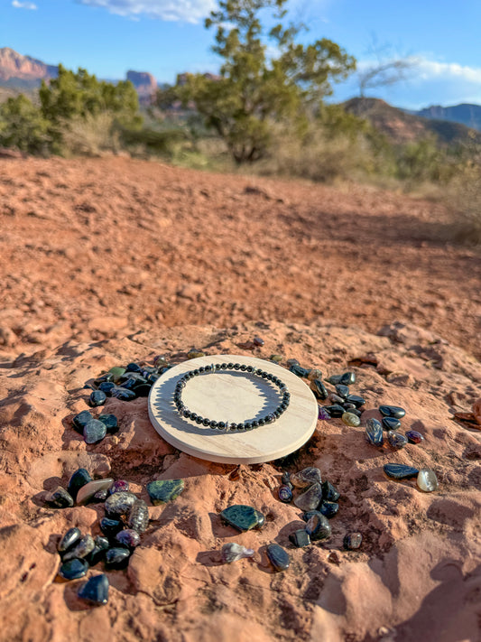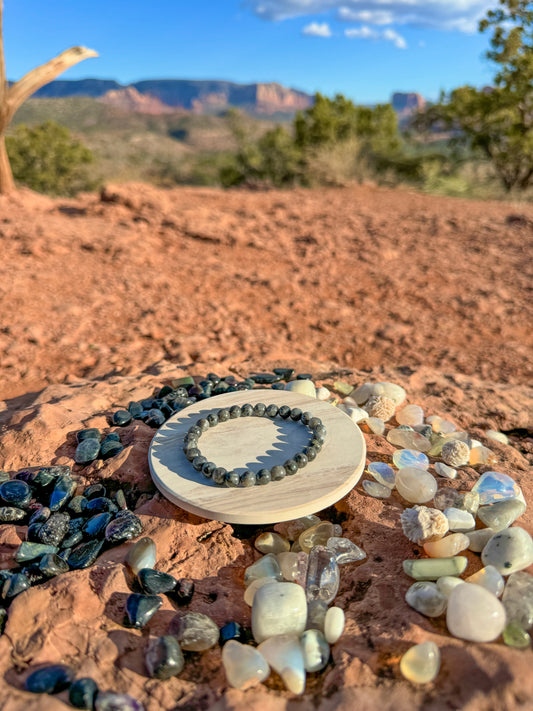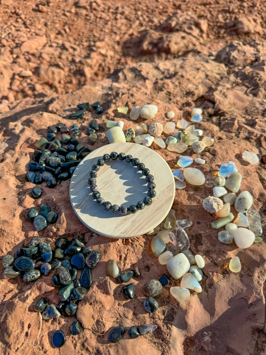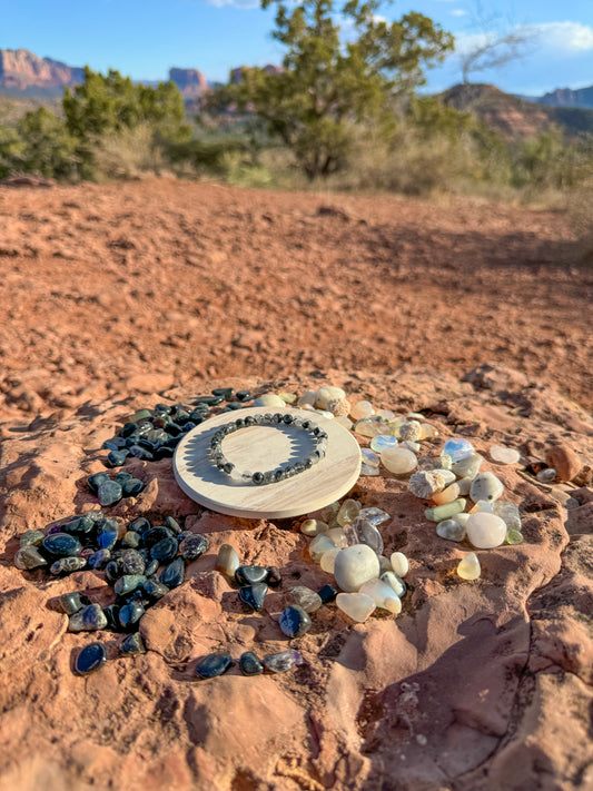 Indigo Gabbro & Hemalyke W/ Buddha Charm Bracelet