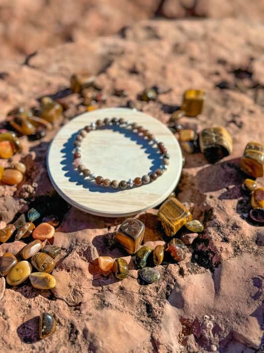 Tiger Eye W/ Bronze Buddha Charm Bracelet