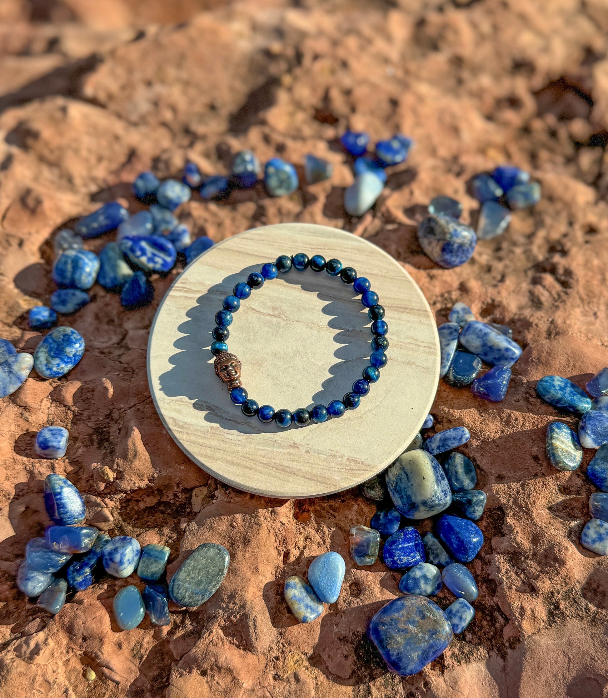 Are you seeking inner peace, wisdom, and focused clarity? Blue Tiger Eye brings together protection, insight, and emotional stability. Paired with the symbolic Buddha charm, our handmade Blue Tiger Eye bracelet promotes inner wisdom, mindfulness, and a deeper connection to spiritual enlightenment and balance.